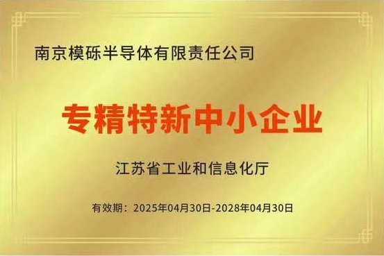 喜报 !南京模砾半导体有限责任公司荣获“江苏省专精特新中小企业”称号!